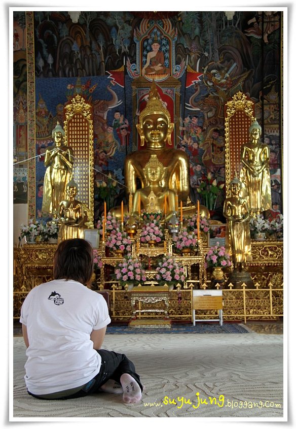 เข้าไปข้างในไปไหว้พระกันค่ะ น้ำตาลไหว้พระนานมาก แล้วไหว้นานอย่างนี้ทุกวัดด้วยนะครับ